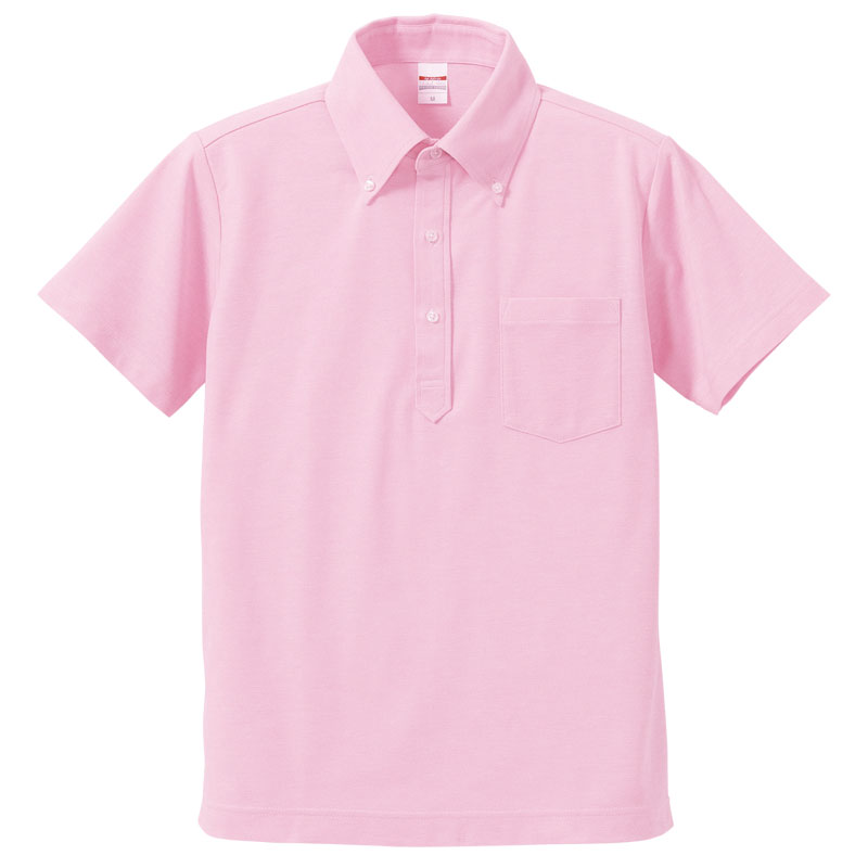 ボタンダウン鹿の子ポロシャツ(胸ポケット有り・ドライ・消臭・UVカット) 5.3oz 5Lサイズ (OXピンク)