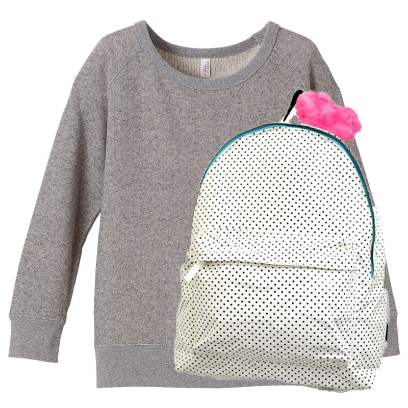 rucca 8.4oz クルーネックスウェット+ドット柄エナメルデイバッグ(白) ガールズ (ヴィンテージへザー)