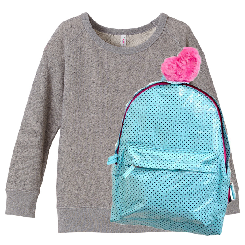 rucca 8.4oz クルーネックスウェット+ドット柄エナメルデイバッグ(サックス) ガールズ (ヴィンテージへザー)
