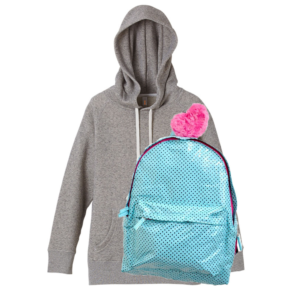 rucca 8.4oz プルオーバーパーカー+ドット柄エナメルデイバッグ(サックス) ガールズ (ヴィンテージへザー)