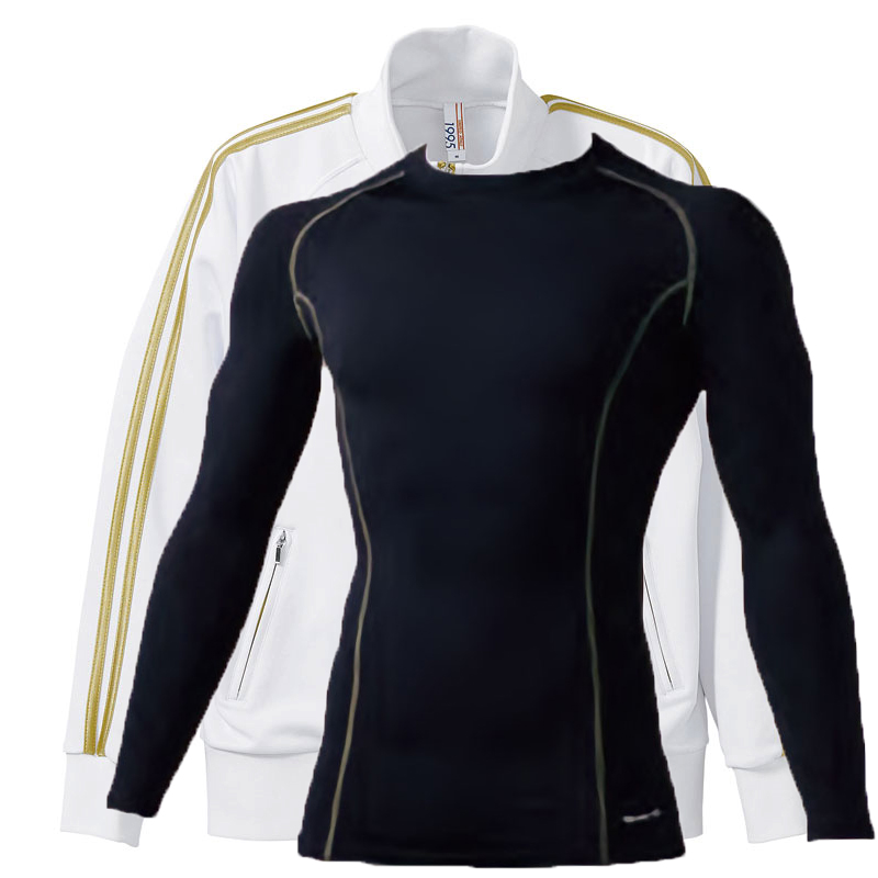 防寒ジャージボトムスセットアップ インナー:サポートタイツ(ブラックxゴールドライン)
