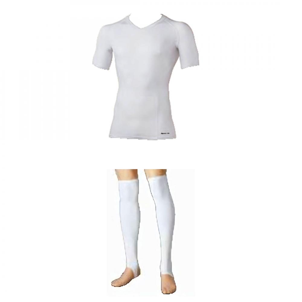 防寒(裏起毛)半袖サポートVネックシャツ+レッグサポーター セットアップ M・Lサイズ (ホワイト)