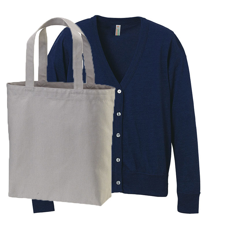 レディースカーディガン(ヴィンテージへザーネイビー)+トートバッグ コーデセット (ライトグレー(バッグ))