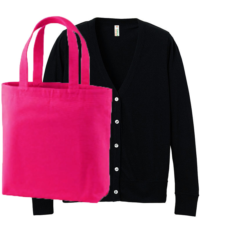 レディースカーディガン(ブラック)+トートバッグ コーデ学割セット (トロピカルピンク(バッグ))