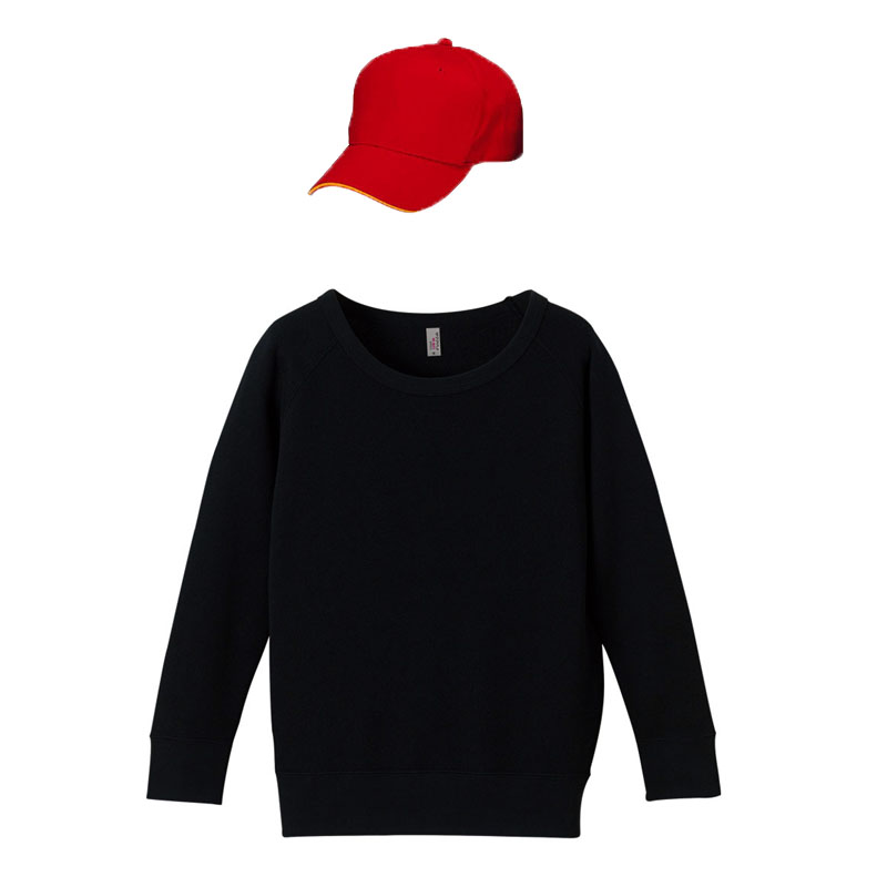レディース クルーネックデニム(インディゴ染め)+メジャーキャップ(レッド・オレンジ) コーデセット