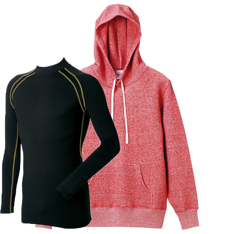 防寒ジョギングセットアップ 8.4oz プルオーバーパーカー+裏起毛コンプレッションインナー