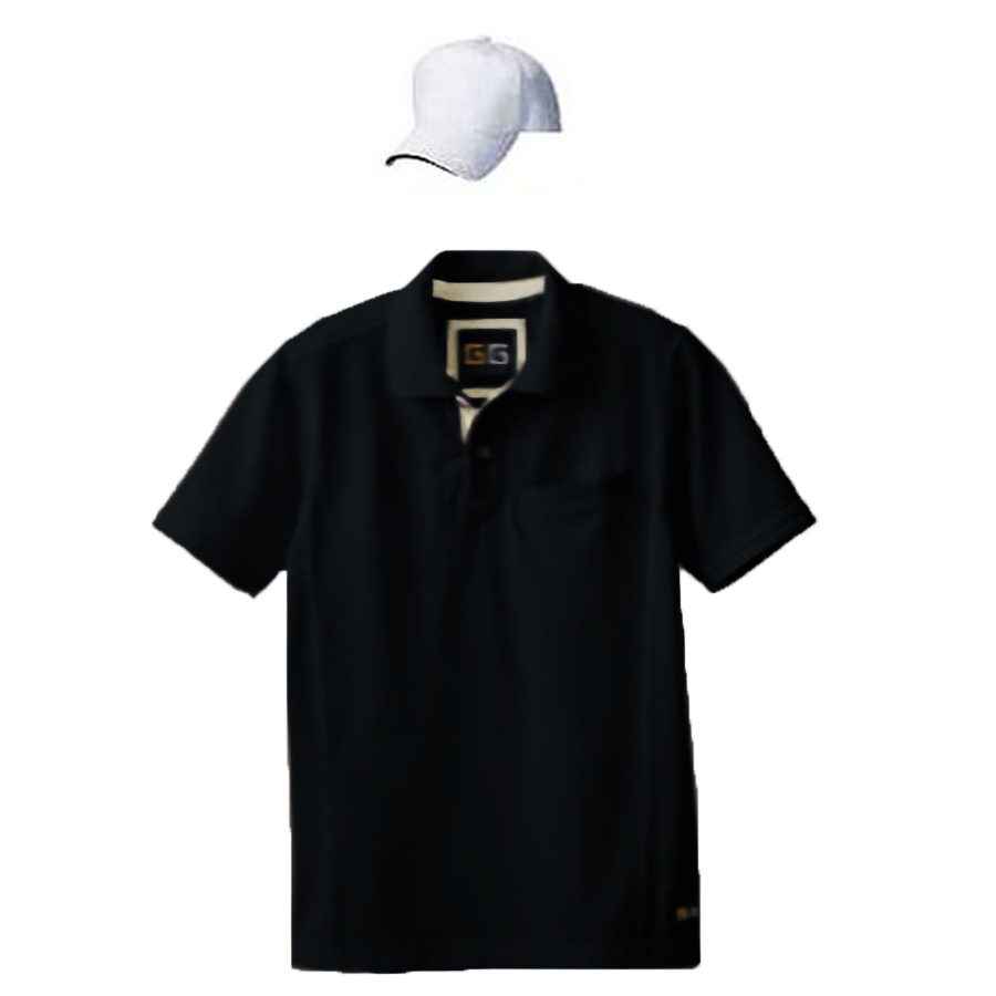 G.GROUNDゴルフウェアコーデ 6.9oz 半袖鹿の子ポロシャツ+コットンキャップ 4Lサイズ (ブラック+(帽子)ホワイト・ブラック)
