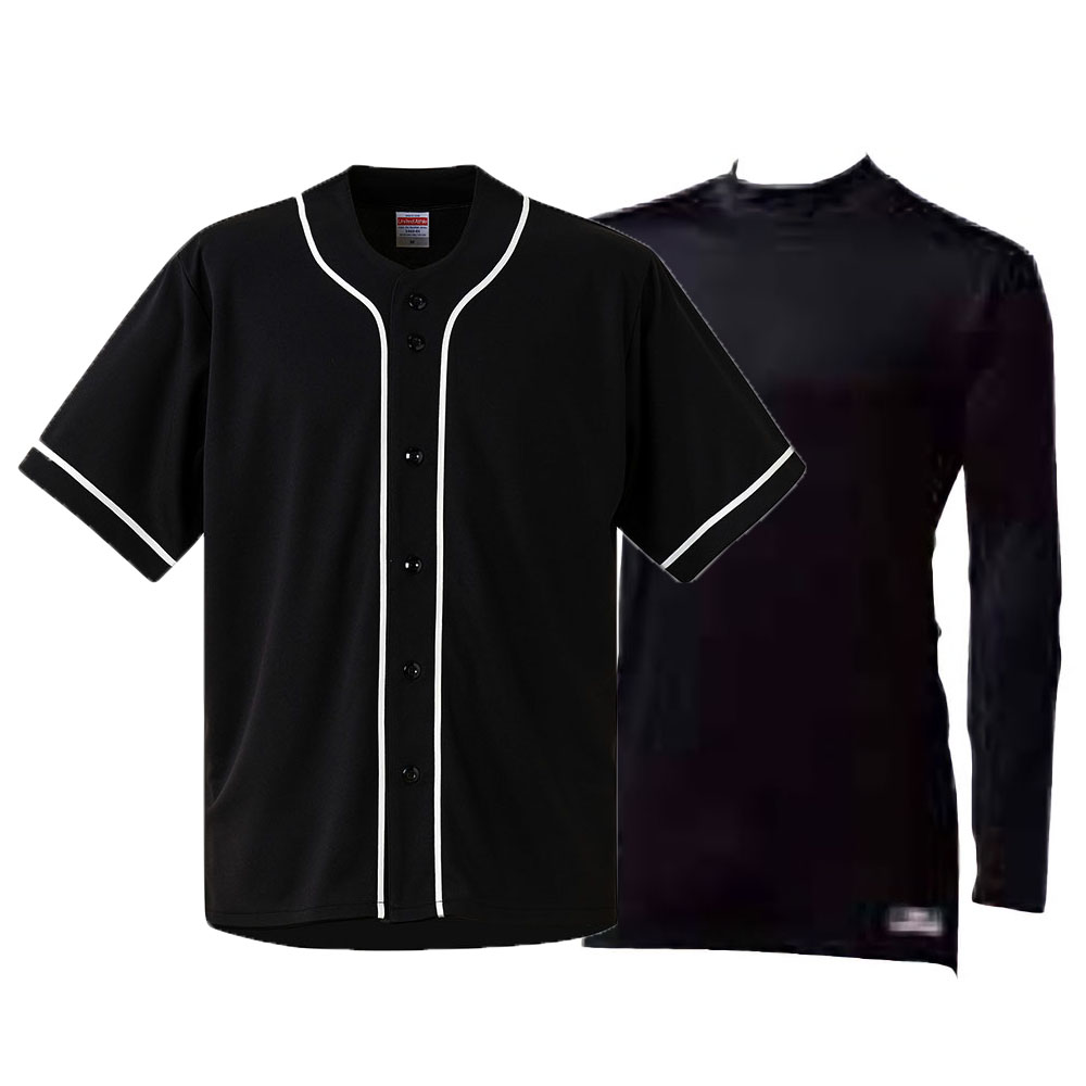 ユナイテッドアスレ ベースボールシャツ+裏起毛コンプレッションウェア(ブラック×ゴールドライン)