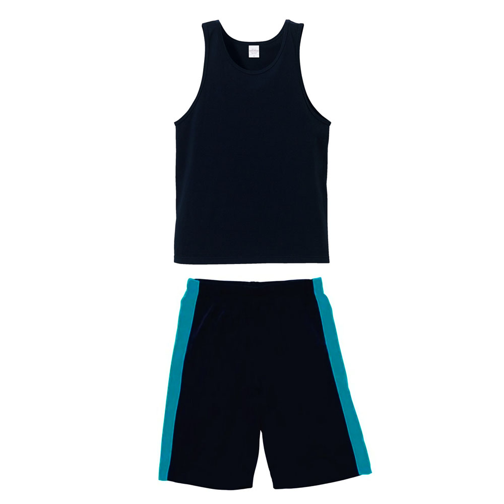 バスケットボール プラクティスジャージ セットアップ タンクトップ+ハーフパンツ M~XLサイズ (上下ネイビー)