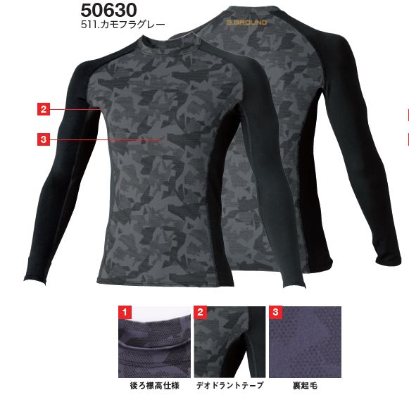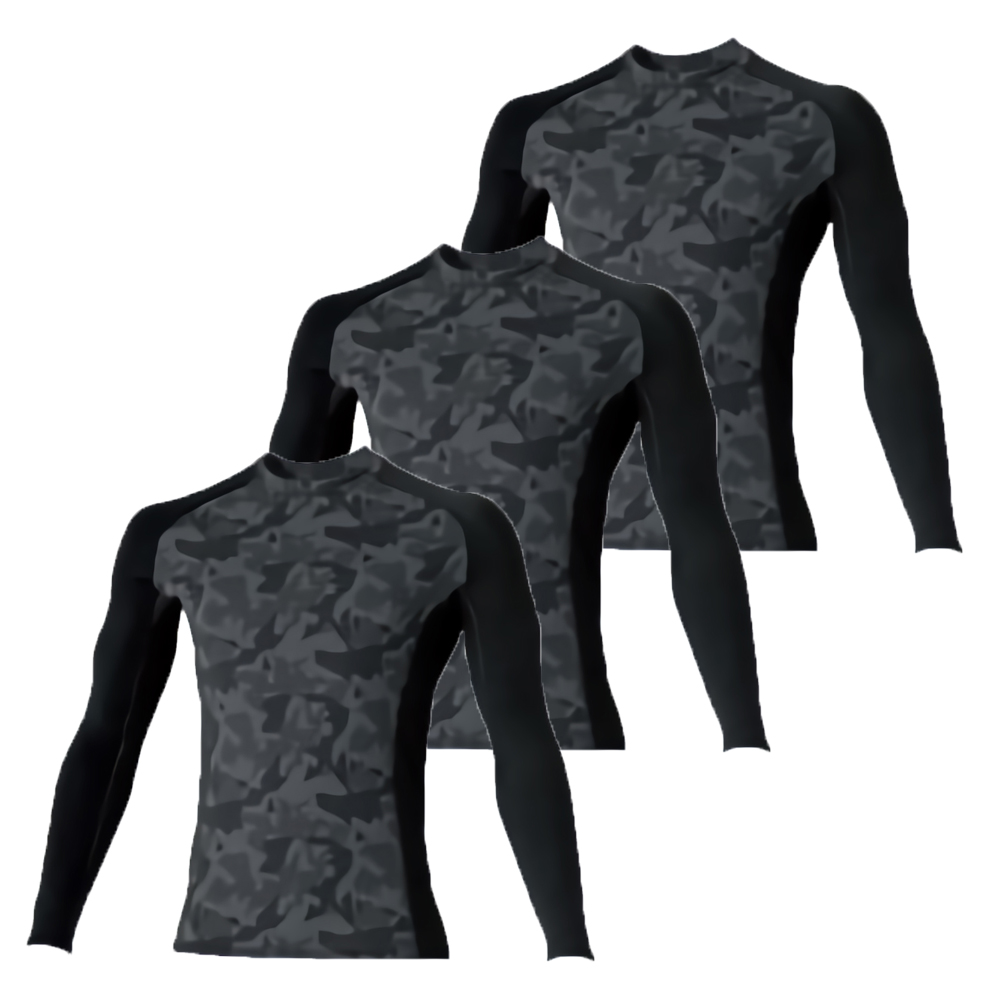 3days G.GROUND ドライ+デオドラント 裏起毛長袖サポートクルーネックシャツ×3 (カモフラグレー)