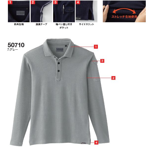 G.GROUND 8.6oz 肉厚な生地感 ストレッチ長袖ポロシャツ 4Lサイズ
