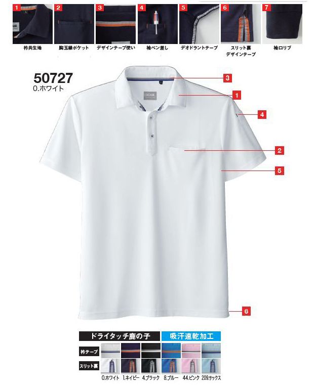 SOWA 5.2oz ドライ+デオドラント半袖鹿の子ポロシャツ SS~3Lサイズ