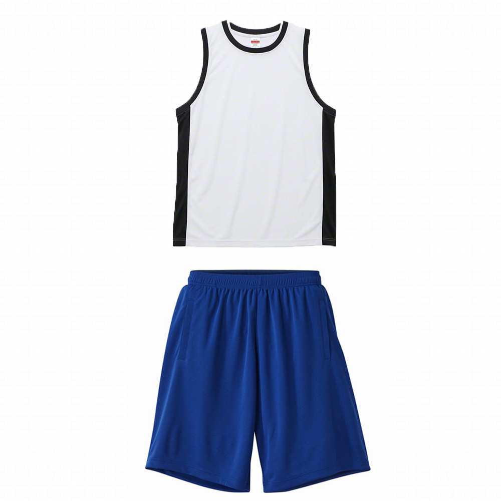 ユナイテッドアスレ 4.1oz DRYバスケットウェア上下セットアップ (上ホワイト・ブラック+下コバルトブルー)