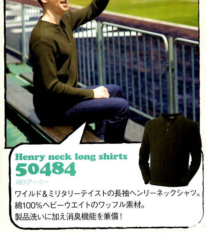 G.GROUND 8.8oz長袖ヘンリーネックシャツ(綿100%・消臭機能) M~3Lサイズ