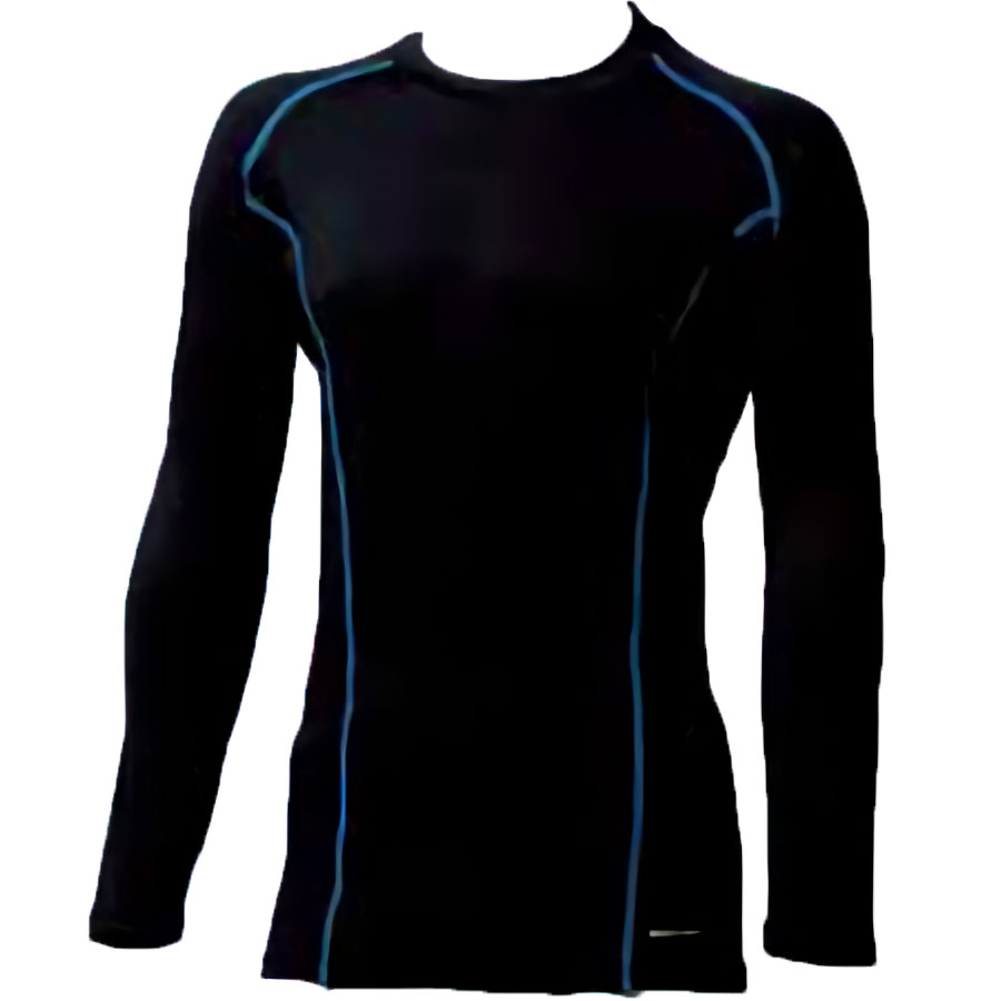 サポート長袖Tシャツ(吸汗速乾、サラッとした着心地) S~3Lサイズ (ブラックxブルーライン)