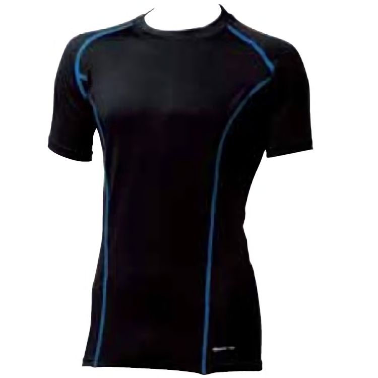 サポート半袖Tシャツ(吸汗速乾、サラッとした着心地) S~3Lサイズ (ブラックxブルーライン)