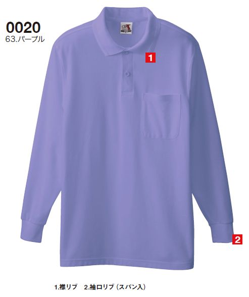 EXTRA_COMFORT 5.3oz 鹿の子ポロシャツ長袖(胸ポケット有り) 0020 4Lサイズ