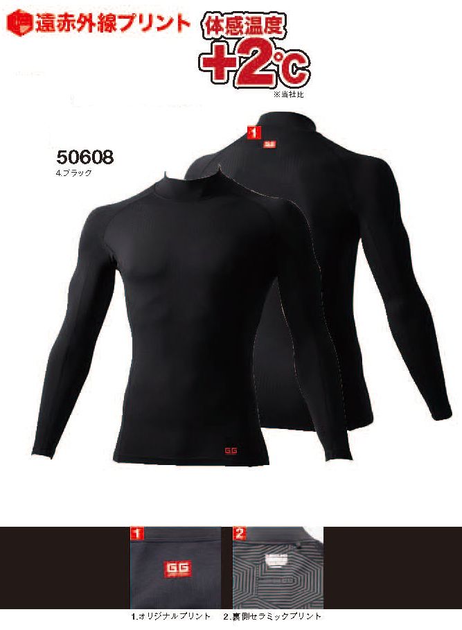 G.GROUND 5.0oz 遠赤長袖サポートハイネックシャツ S~LLサイズ (ブラック)