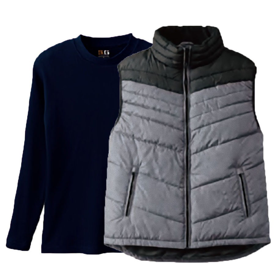 G.GROUND重ね着コーデ 防寒ベスト(衿フリース・撥水)+厚手の長袖Tシャツ 3Lサイズ