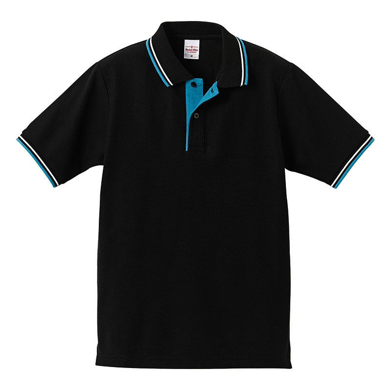 ユナイテッドアスレ 6.2oz 鹿の子ラインポロシャツ(ドライ・消臭・UVカット) XS~2L (ブラック・ターコイズブルー・ホワイト)